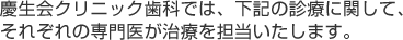 歯科疾患・治療に関するご相談、随時対応いたします。(セカンドオピニオンに関しては、実費3000円をいただいております) |